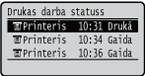 Parāda izvēlētā vienuma pašreizējo statusu. Kā piemērs tālāk ir parādīts ekrāns <Drukas darba statuss>.