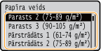 Ja jums ir bieži jāmaina ievietojamais papīrs, izmantojiet opciju <Brīvs> — tādējādi katrā iekārtas lietošanas reizē varēsit mainīt iestatījumu, veicot mazāku skaitu darbību. Tomēr ņemiet vērā, ka šis iestatījums ļauj iekārtai veikt drukāšanu arī tad, ja printera draiverī iestatītais papīra tips neatbilst iekārtā faktiski ievietotajam papīra tipam.