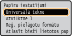 Universālajai teknei varat reģistrēt noklusējuma papīra iestatījumus. Reģistrējot noklusējuma iestatījumus, ikreiz, kad universālajā teknē ievietosit tāda paša formāta papīru, iestatījumi nebūs jānorāda atkārtoti.