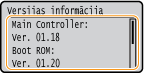 Aparātprogrammatūras versiju var pārbaudīt arī iekārtas darbības panelī. Pēc aparātprogrammatūras atjaunināšanas pabeigšanas pārbaudiet, vai atjaunināšana tika veikta pareizi. Programmaparatūras versijas pārbaude