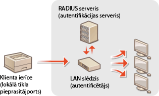 Darbības paneļa izmantošanaIEEE 802.1X autentifikāciju varat iespējot vai atspējot arī ekrāna Sākums sadaļā <Izvēlne>. <IEEE 802.1X iestatījumi>