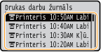 Ja opcija <Rādīt darbu žurnālu> ir iestatīta pozīcijā <Izslēgt>, drukāšanas žurnālus nevar pārbaudīt. <Rādīt darbu žurnālu>