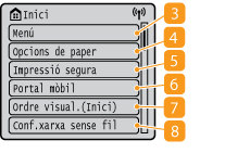<Opcions de funció>, <Preferències> i molts altres ajusts de l'equip es fan des d'aquest botó. Llista del menú d'opcions