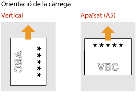 Quan imprimiu en paper preimprès, heu de canviar la col·locació de les cares del paper que s'ha de carregar cada vegada que porteu a terme la impressió a una cara i a doble cara. No obstant això, si <Canviar mètode d'alimentació de paper> està establert en <Prioritzar cara d'impressió>, la col·locació de les cares que utilitzeu per carregar el paper preimprès per a la impressió a doble cara també es pot fer servir per a la impressió a una cara. Aquesta opció resulta útil si porteu a terme freqüentment tant impressions a una cara com a doble cara. <Canviar mètode d'alimentació de paper>