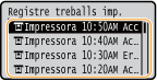 Si <Mostrar registre de treballs> està establert en <Desactivat>, no podeu comprovar els registres d'impressió. <Mostrar registre de treballs>