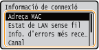 Es pot imprimir una llista de les opcions de xarxa actuals. Llista de dades de l'usuari / llista de dades de l'administrador del sistema