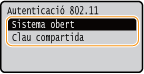 Quan es connecta a una xarxa LAN sense fil, l'equip produeix un error d'autenticació si l'autenticació de clau compartida s'estableix a l'encaminador sense fil. Si això passa, l'equip canvia automàticament l'opció a <Clau compartida> i recupera la connexió.