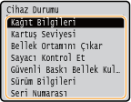 <Bellek Ortamını Çıkar>USB bellek aygıtını güvenli şekilde çıkarmak için kullanılır. Bu sadece bir USB bellek cihazı makineye bağlandığında görüntülenir.
