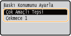 İsteğe bağlı cassette feeding module takılıyken kağıt çekmecesi de görüntülenir.
