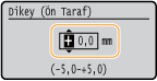 Yazdırma konumunu ayarlarken, yönü "+" ile "-" ve uzaklığı "mm" kullanarak belirleyin. <Dikey Olarak Ayarla (Ön Taraf)>/<Dikey Olarak Ayarla (Arka Taraf)> öğesi için yazdırma konumunu yukarıdan aşağıya kaydırırken "+" işaretli bir değer belirleyin. <Yatay Olarak Ayarla (Ön Taraf)>/<Yatay Olarak Ayarla (Arka Taraf)> öğesi için yazdırma konumunu soldan sağa kaydırırken "+" işaretli bir değer belirleyin. Ters yönde kaydırma yapmak için "-" işaretli bir değer belirleyin.