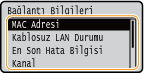Geçerli ağ ayarlarının listesini yazdırabilirsiniz. Kullanıcı Veri Listesi/Sistem Yöneticisi Veri Listesi