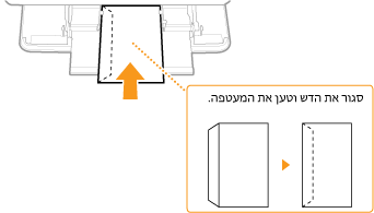 חלק זה מתאר כיצד לטעון מעטפות בכיוון הרצוי וכן את ההליכים שיש להשלים לפני טעינת מעטפות. לתיאור של ההליך הכללי לטעינת מעטפות במגש הרב-תכליתי, ראה טעינת נייר במגש הרב-תכליתי.