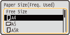 אם אתה מחליף לעתים קרובות את הנייר הנטען, הגדר מצב <Free Size>. כך תקטין את מספר השלבים הדרוש להחלפת ההגדרה בכל פעם. תוכל גם להציג הודעת שגיאה כאשר ההגדרה במנהל המדפסת שונה משמעותית מגודל הנייר שנטען.