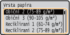 Ako se zaslon prikazan iznad ne prikazuje, a papir je umetnutAko uvijek umećete isti papir u višenamjensku ladicu, preskočite operacije postavljanja papira tako da registrirate format papira i vrstu kao standardne postavke. Kada je registrirana standardna postavka, međutim, zaslon iznad se ne prikazuje. Da biste prikazali zaslon, odaberite <Navedi pri ulaganju papira> (Registriranje standardnih postavki papira za višenamjensku ladicu).