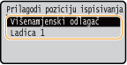 Ako ispisani dokument nije centriran ili je izvan raspona ispisa, prilagodite položaj za ispis. Položaj za ispis možete prilagoditi za svaki izvor papira. Položaj za ispis možete prilagoditi u rasponu od od -5,0 mm do +5,0 mm u koracima od 0,1 mm.