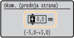 Kada prilagodite položaj za ispis, navedite smjer pomoću znakova "+" i "-" te udaljenost pomoću mjerne jedinice "mm". Za postavku <Pril. ok. (prednja strana)>/<Pril. ok. (stražnja strana)> navedite vrijednost pomoću znaka "+" da biste položaj za ispis pomaknuli prema dolje. Za postavku <Pril. vod. (prednja strana)>/<Pril. vod. (stražnja strana)> definirajte vrijednost pomoću znaka "+" da biste položaj ispisivanja pomaknuli slijeva nadesno. Da biste ga pomicali u suprotnom smjeru, definirajte vrijednost pomoću znaka "-".