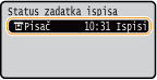 Odaberite dokument čiji dnevnik želite provjeriti.Ako je dokument uspješno ispisan, prikazat će se poruka <OK>, a ako se dokument nije uspio ispisati zbog otkazivanja ili zbog neke pogreške, prikazat će se poruka <Pogreška>.
