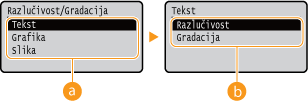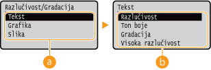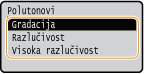 Pomoću postavke <Gustoća (fino podeš.)> gustoću tonera možete prilagoditi na jednu od tri razine gustoće: velika gustoća, srednja gustoća i mala gustoća.