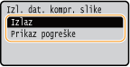 Odaberite <Izlaz> ili <Prikaz pogreške>