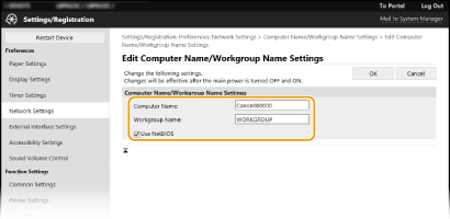 Odaberite [Network Settings] [Computer Name/Workgroup Name Settings].