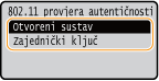 Prilikom povezivanja s bežičnim LAN-om u uređaju će se pojaviti pogreška provjere autentičnosti ako je na bežičnom usmjerivaču postavljena provjera autentičnosti putem zajedničkog ključa. Ako se to dogodi, uređaj će automatski promijeniti postavku u <Zajednički ključ> i ponovno pokušati uspostaviti vezu.