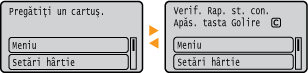 Mesajele sunt afişate pe ecran în situaţii, cum ar fi atunci când hârtia se termină sau când se atinge durata de viaţă a cartuşului de toner. Pentru mai multe informaţi, consultaţi „Remedierea problemelor (FAQ)” de pe site-ul web cu manualul online.