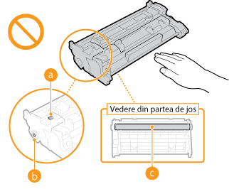 Asigurați-vă că țineți cartușul de toner de mâner.