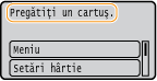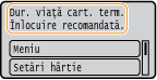 Dacă se afișează acest mesaj în timp ce este primit un fax prin Internet, aparatul nu imprimă ca să se evite imprimarea neclară. În schimb, datele primite se stochează în memorie. Pentru a continua imprimarea chiar dacă nivelul de toner rămas în cartuș este scăzut, setați <Contin. imprim. când niv. cart. e scăz.> la <Pornit>. <Contin. imprim. când niv. cart. e scăz.>