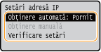 Verificaţi dacă <IP Automat> este setat la <Pornit>.