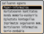 sakatuz gero, dokumentuen egoera begiratzeko aukera ematen dizun pantaila bat bistaratuko da, baita makinaren egoera eta makinaren sarearen ezarpenari buruzko informazioa ere.