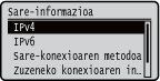 Sarearen ezarpenak bistaratzen ditu, adibidez, makinaren IP helbidea edo hari gabeko LAN komunikazioen egoera bezalako hainbat egoera.