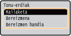 <Dent. (doitze argia)> erabil dezakezu tonerraren dentsitatea hiru dentsitate-mailatara ezartzeko: dentsitate altua, dentsitate ertaina edo dentsitate baxua.