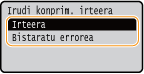 Hautatu <Irteera> edo <Bistaratu errorea>