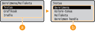 Ezarpenen lehentasunaInprimatzeko ezarpen bat inprimagailuaren kontrolatzailetik eta makinaren eragiketa-paneletik zehazten bada, inprimagailuaren kontrolatzaileko zehazpenak eragiketa-panelekoa baliogabetuko du. Eragiketa-paneleko zehazpena hainbat kasutan gauzatuko da, adibidez PS/PCL inprimatzea edo UNIX bidezko inprimatzea burutzean edo inprimagailuaren kontrolatzailerik onartzen ez duen beste sistema eragile bat erabiliz inprimatzerakoan.