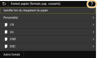 Sur certains écrans, le bouton <?> permet d'afficher les descriptions des fonctions ou des instructions pour faire fonctionner l'appareil. |