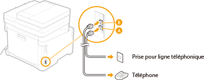 Connectez le câble téléphonique inclus à la prise pour ligne téléphonique située sur l'appareil () et à la prise pour ligne téléphonique murale.