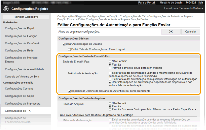 [Permitir] | Permite o envio de e-mails e I-Faxes. |