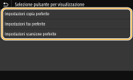 Selezionare la funzione con le Impostazioni preferite che si desidera aggiungere come pulsante.