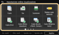 È possibile aggiungere/eliminare pulsanti di scelta rapida visualizzati nella schermata Schermata princip. in base alle proprie esigenze operative e preferenze. È anche possibile cambiare l'ordine in cui vengono visualizzati.