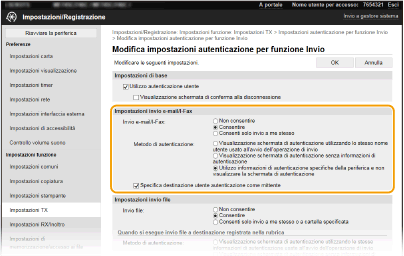[Impostazioni autenticazione per funzione Invio].