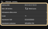 L'indirizzo IP non è configurato correttamente se viene visualizzato come "0.0.0.0". La connessione della macchina a un bridge o hub di commutazione può non riuscire anche se l'indirizzo IP è configurato correttamente. Questo problema può essere risolto impostando un intervallo prima che la macchina inizi la comunicazione. Impostazione di un tempo di attesa per la connessione a una rete È possibile stampare un elenco delle impostazioni di rete correnti. Elenco dati utente/Elenco dati gestore sistema |