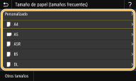 2 | Especifique la longitud del lado <X> y del lado <Y>. Seleccione <X> o <Y> e introduzca la longitud de cada cara con las teclas numéricas. ![]() ![]() Si registra el tamaño de papel que utiliza con más frecuencia en los botones <S1> a <S3>, puede recuperarlo con una tecla abreviada. Registro de tamaños de papel personalizados |
