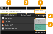 Seleccione esta pestaña para buscar un destino en la libreta de direcciones o en un servidor LDAP, para introducir una marcación codificada o para especificar un destino usando las opciones de recuperación.