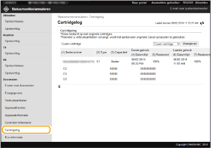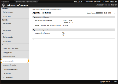 Als u met documenten wilt werken die niet konden worden doorgestuurd, moet u de volgende instellingen kiezen: Stel <Gebruik geheugenslot> in op <Aan>. Stel <Faxvoorbeeld gebruiken> in op <Aan>. Log in de systeembeheerdersmodus in op de externe UI. U kunt op [Verwijderen] klikken om documenten te verwijderen die niet konden worden doorgestuurd. U kunt op [Opdrachtnummer] klikken om gedetailleerde informatie weer te geven van, of een voorbeeld te bekijken van het document dat niet kon worden doorgestuurd. Ook kunt u documenten die niet konden worden doorgestuurd, afdrukken, opnieuw verzenden of verwijderen met behulp van het bedieningspaneel van het apparaat. |
