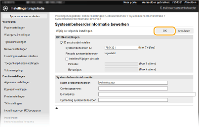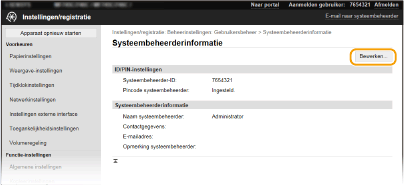 Sommige instellingen kunnen uitsluitend worden gewijzigd als u zich aanmeldt in de Systeembeheerder-modus. Sommige instellingen kunnen bewerkingen vereisen die verschillen van de hier beschreven procedure. |