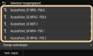U kunt de beschikbare draadloze routers (of toegangspunten) zoeken en een keuze maken uit de display van het apparaat. Geef voor de netwerksleutel de versleuteling-sleutel / wachtwoord op. Controleer en noteer de benodigde configuratiegegevens, zoals de SSID en netwerksleutel (