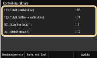 Du kan kontrollera separata summor för det antal sidor som använts för färgutskrifter och svartvita utskrifter. Dessa summor inkluderar fax, rapporter och listor utöver kopior och utskrifter av data från datorer.