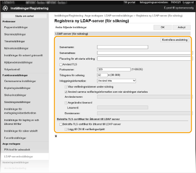 Klicka på [LDAP-serverinställningar].