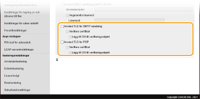 Använd fjärranvändargränssnittet för att konfigurera de detaljerade sänd- och mottagningsinställningarna, såsom inställningarna för att använda enheten för att skicka och ta emot I-fax och inställningarna för POP-autentisering och kryptering av kommunikation innan du skickar e-post eller I-fax. Kontakta din leverantör eller nätverksadministratör för nödvändiga inställningar.