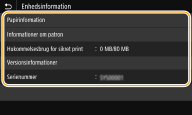 Viser netværksindstillinger som f.eks. maskinens IP-adresse og status såsom tilstanden for trådløs LAN-kommunikation.